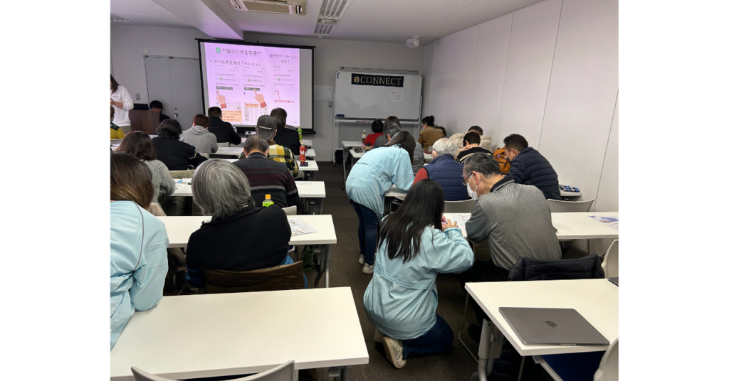 特に60代以上の参加者様で、スマホ・パソコン操作への苦手意識を持たれている方が多い印象です。
